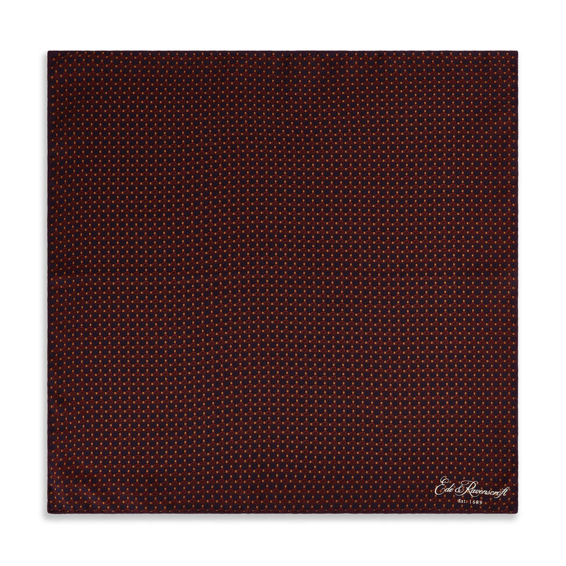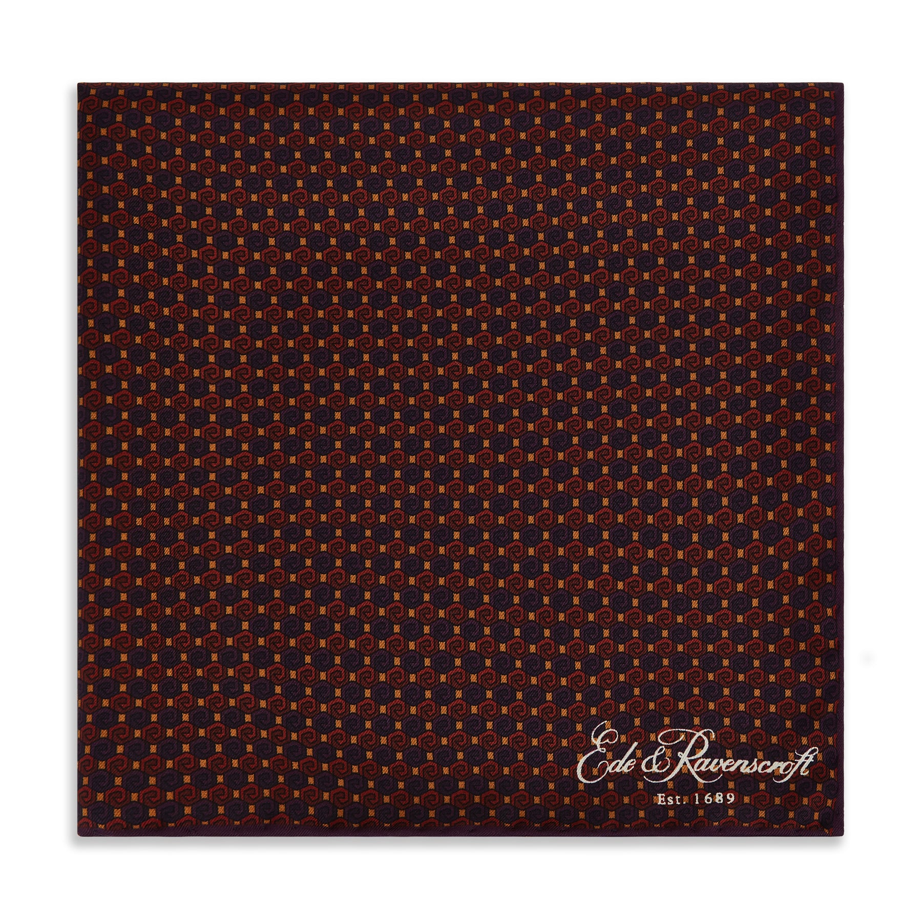 Printed in Macclesfield England, this playful, printed silk pocket square will compliment many outfits with a playful geometric design. Also available in Green and Blue.