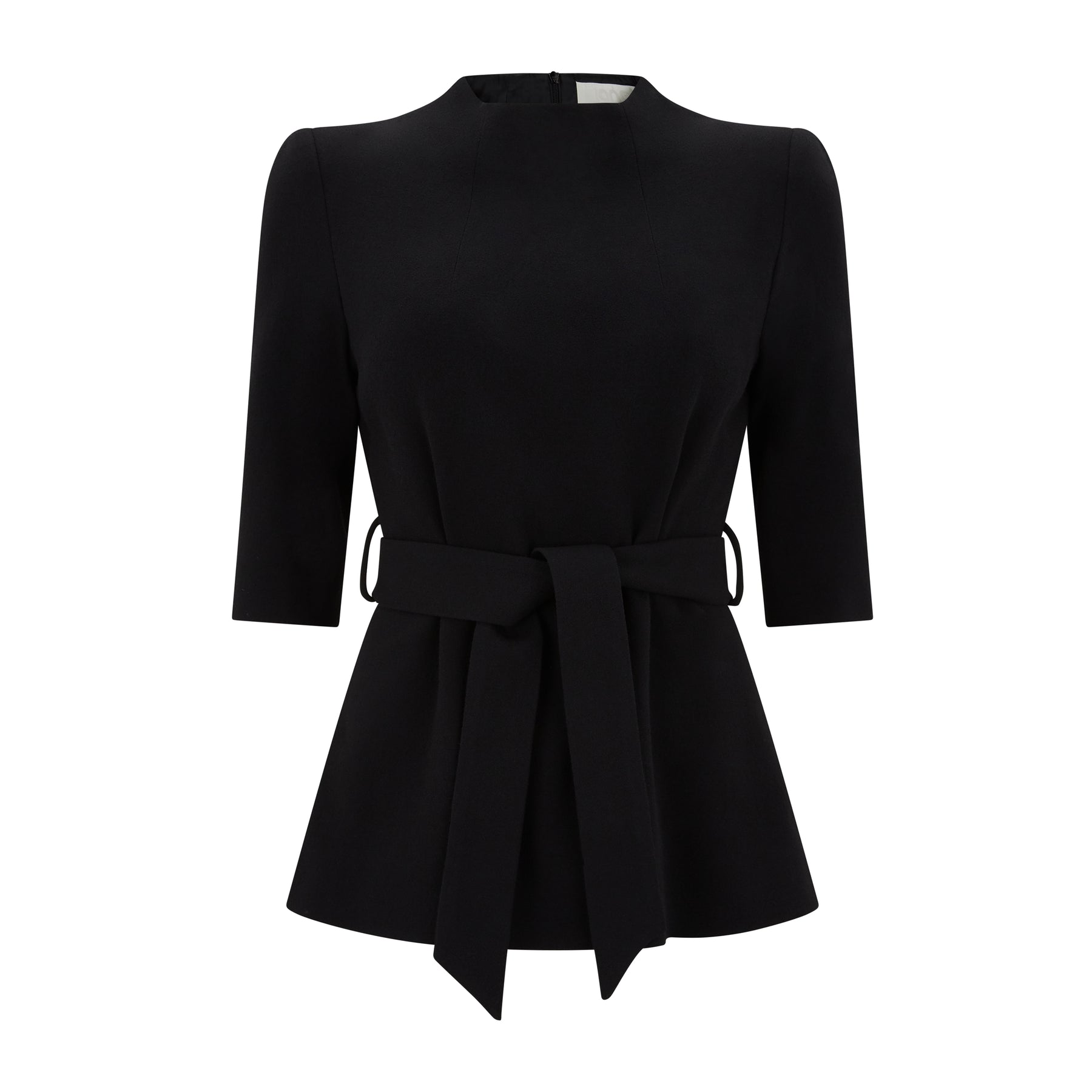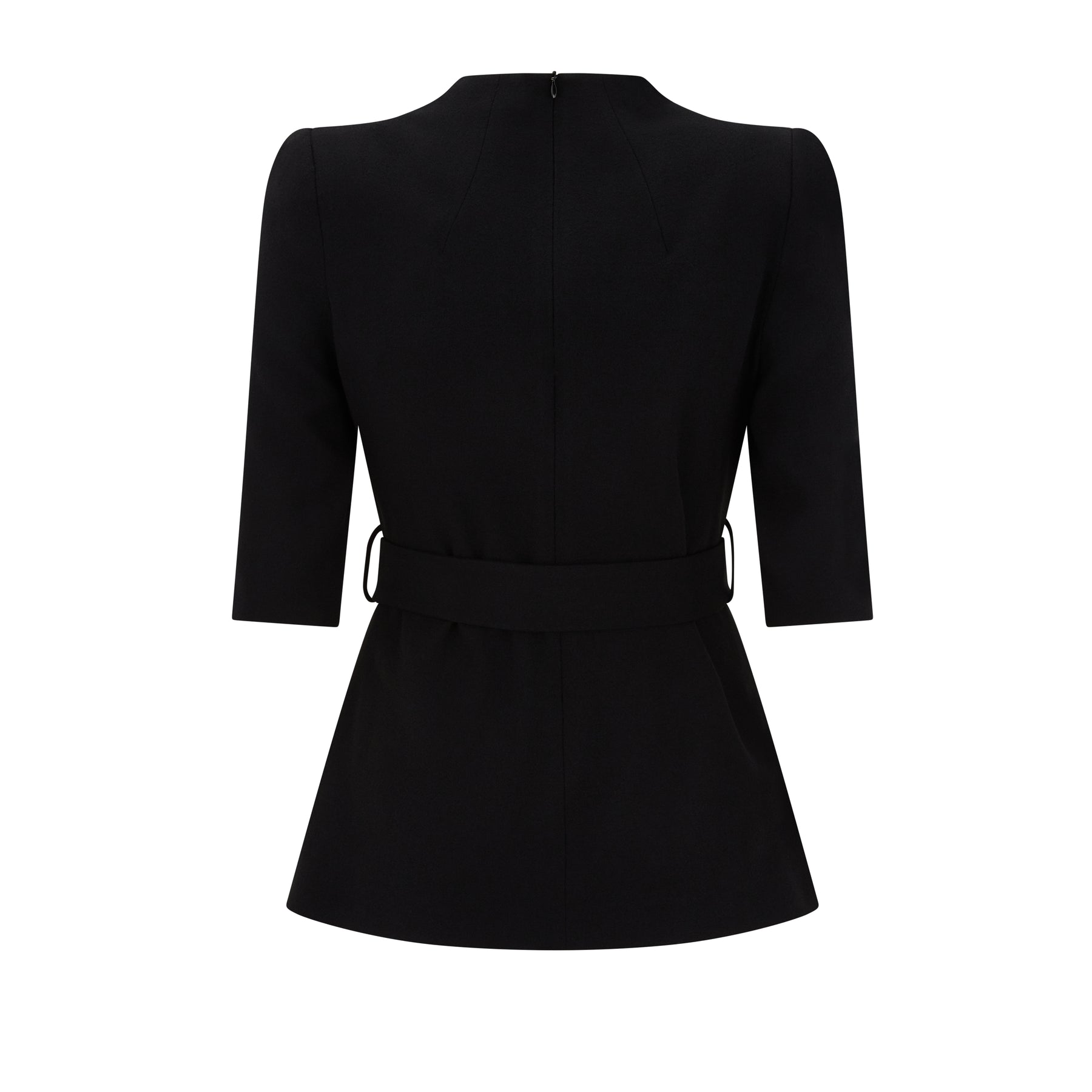 Jane Viola top features a slightly raised neckline and shoulders, longline darts on the bodice and a removeable belt to create a slim line, flattering shape. Concealed centre back zip closure. Pair with Kian wool crepe pencil skirt for the full look.